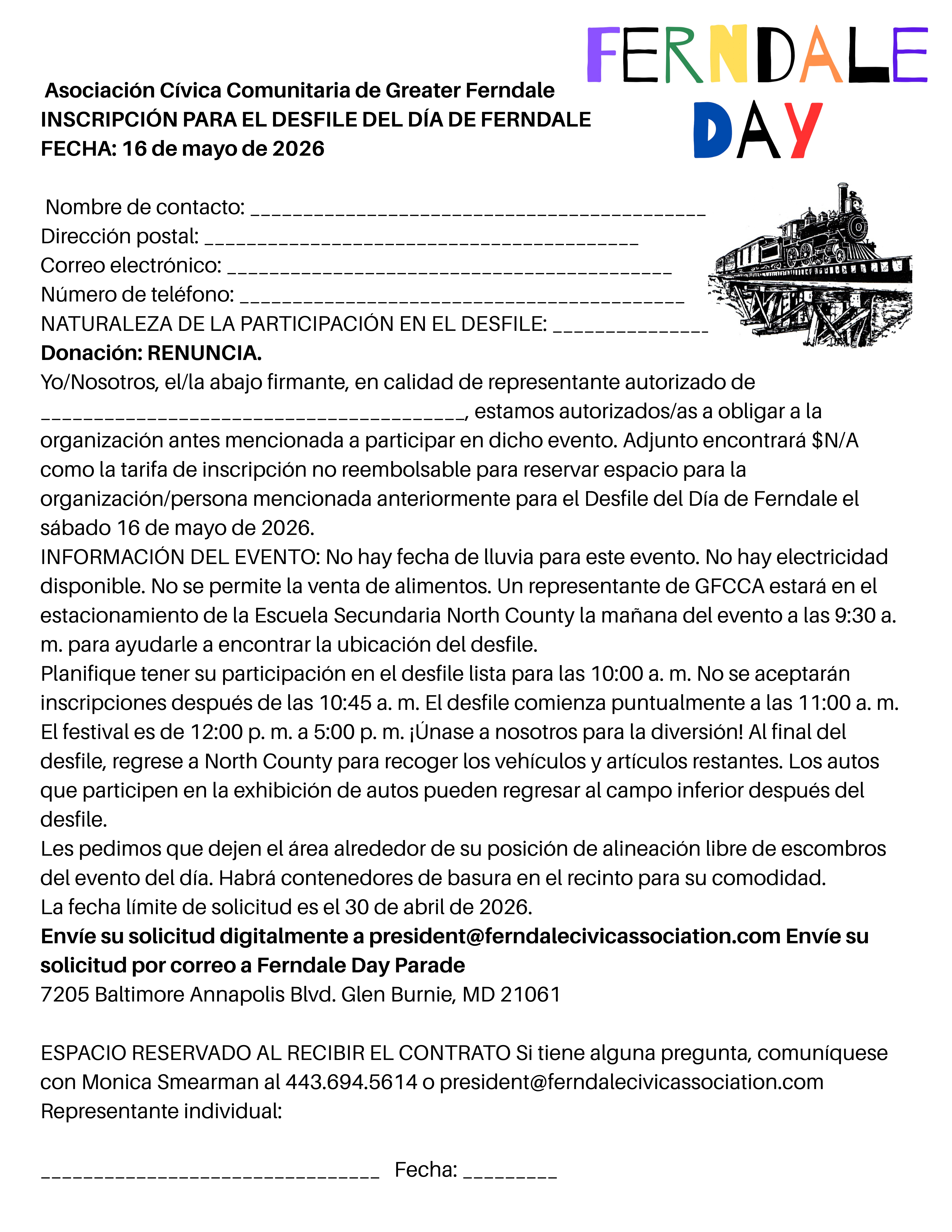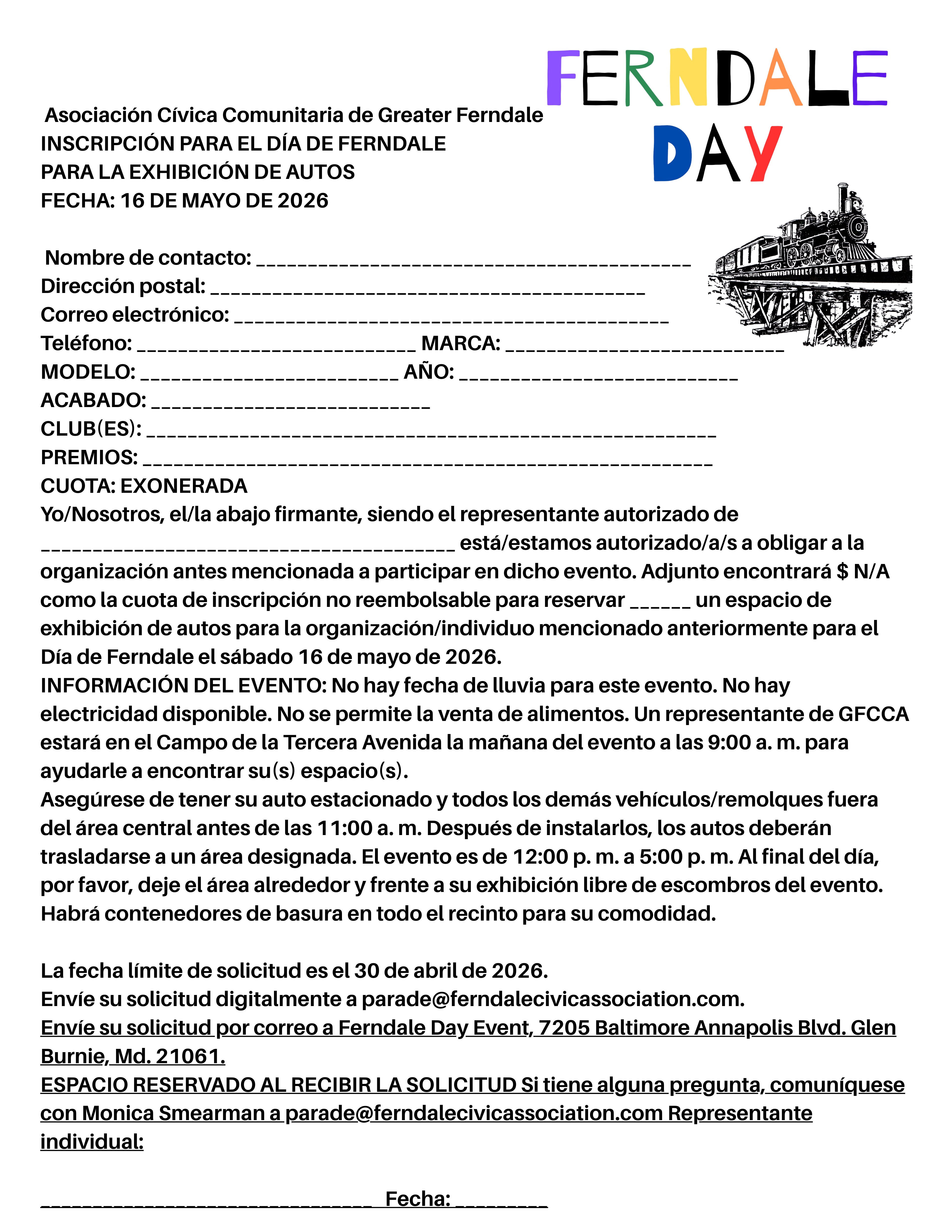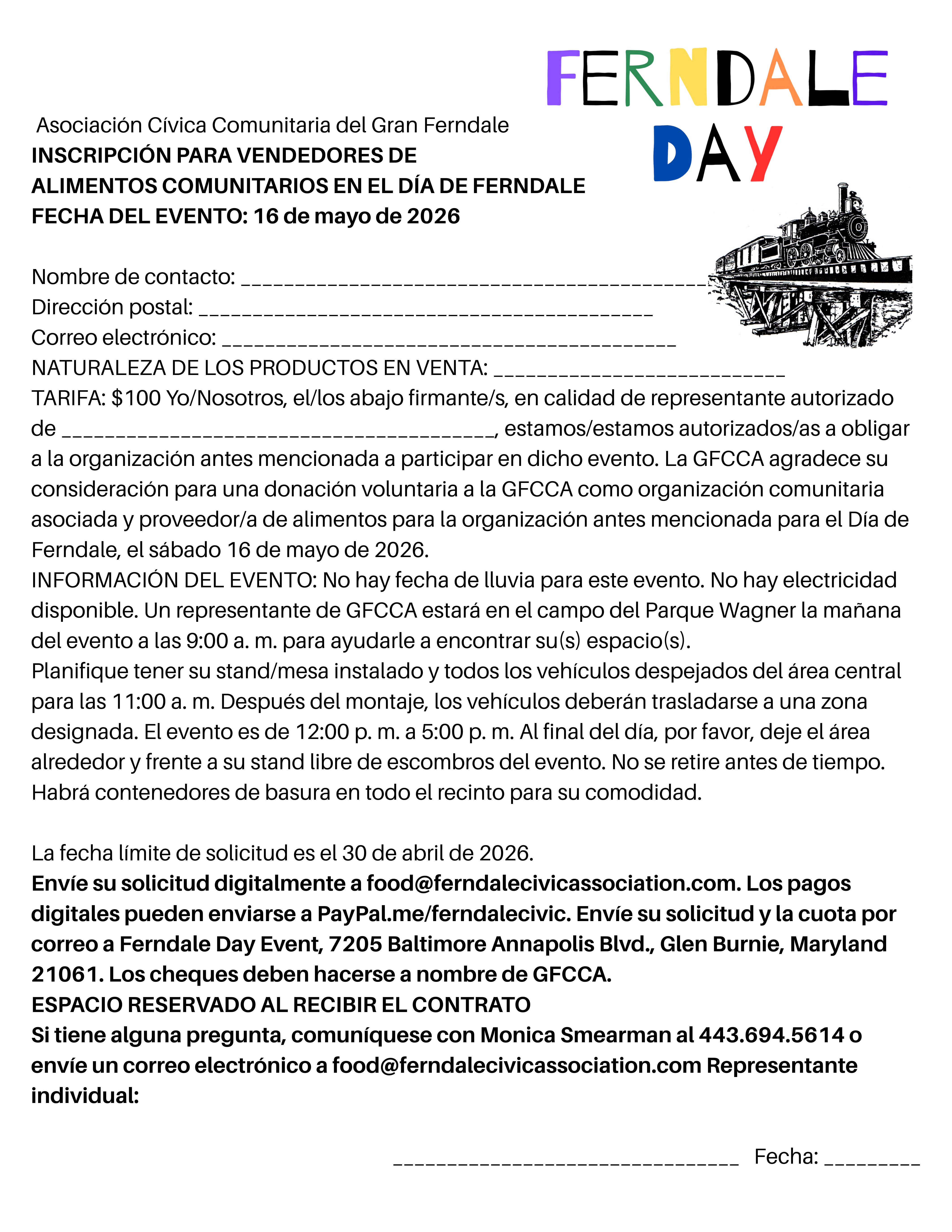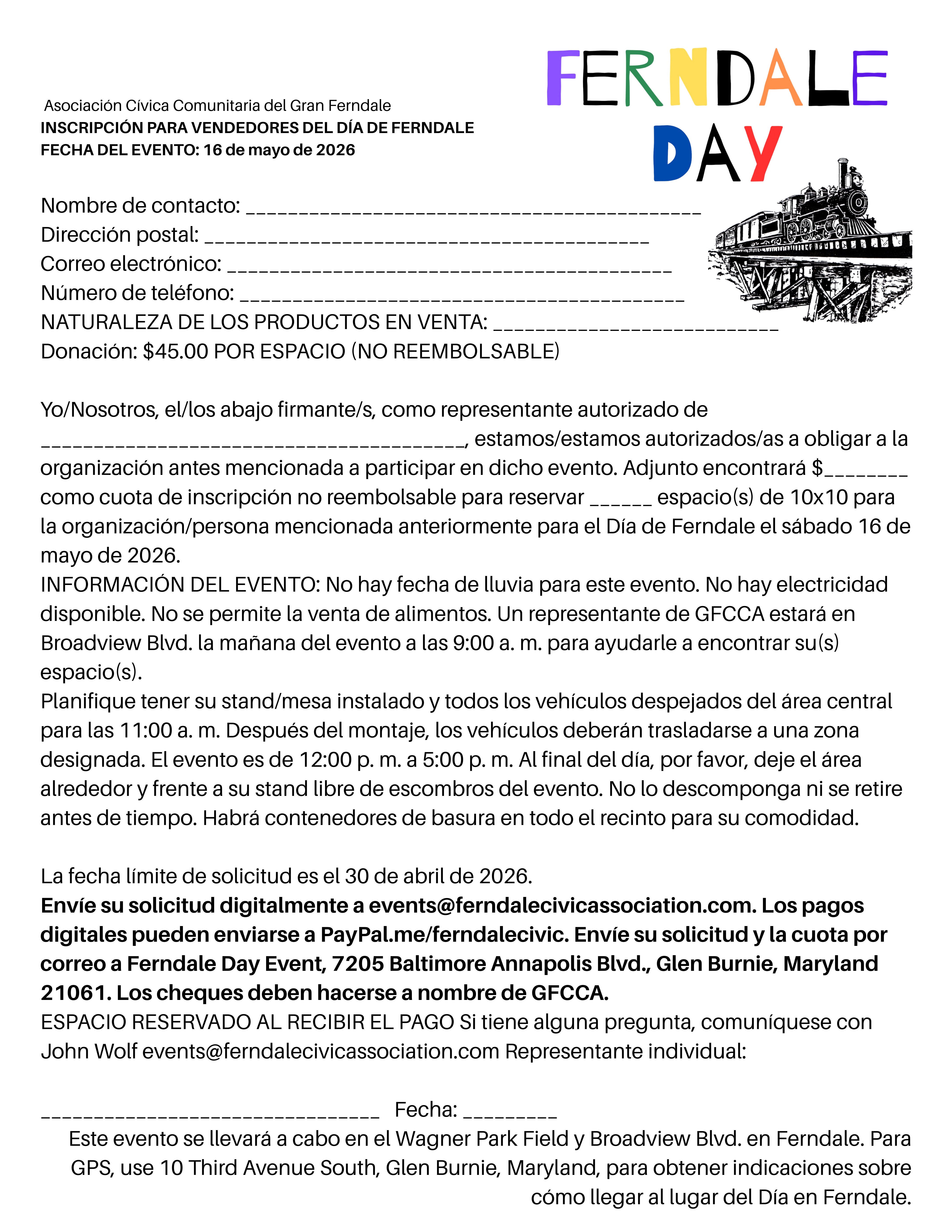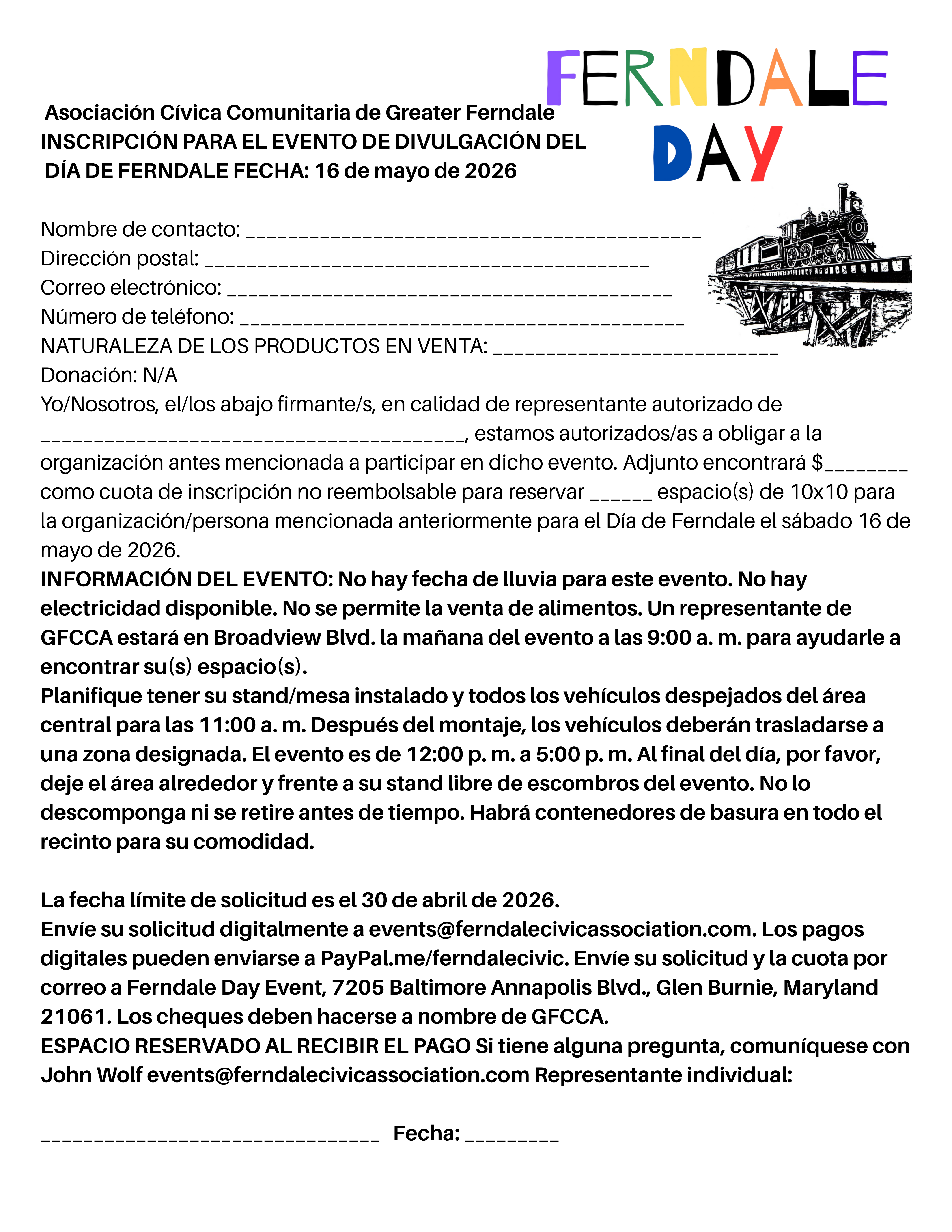 La Asociación Cívica Comunitaria de Greater Ferndale depende de las donaciones comunitarias y el patrocinio de eventos para poder realizar Ferndale Day y nuestros otros eventos durante todo el año. Por favor, considere ser parte del evento patrocinándonos este Ferndale Day.